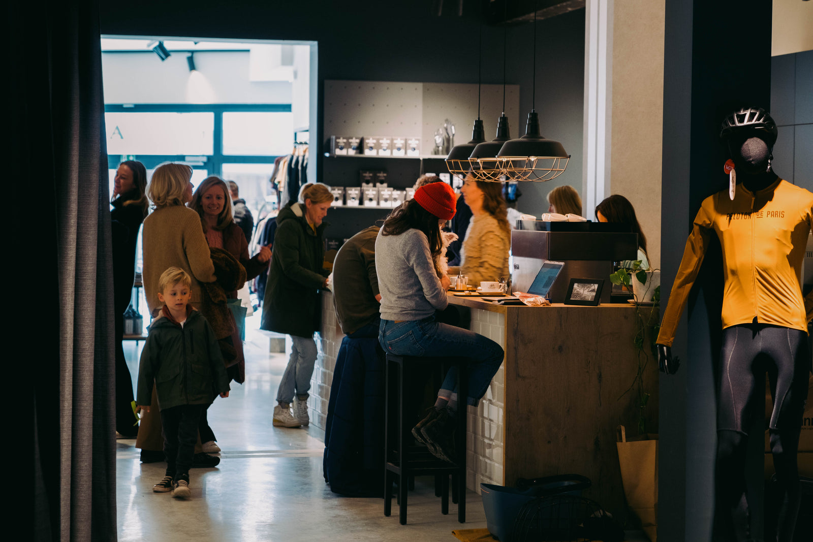 The Peloton de Paris retail spaces provides a new level in the 'small bike shop' experience in Belgium. We offer the cycling enthusiast a unique shopping experience. In our stores located in Mechelen, you will find the full collection of our Peloton de Paris cycling apparel or you can order your favourite coffee at the bar. You can stroll around and soak up the cycling vibe or take part in one of our cycling events.